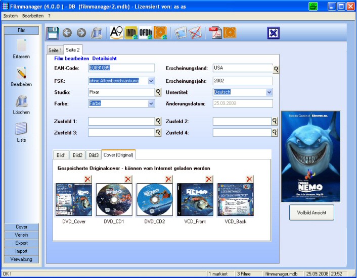Filmmanager - Screenshot "Detailansicht"