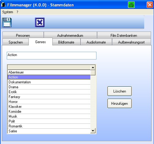 Filmmanager - Screenshot "Stammdaten"