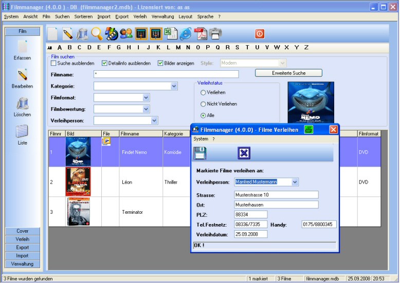 Filmmanager - Screenshot "Verleih"